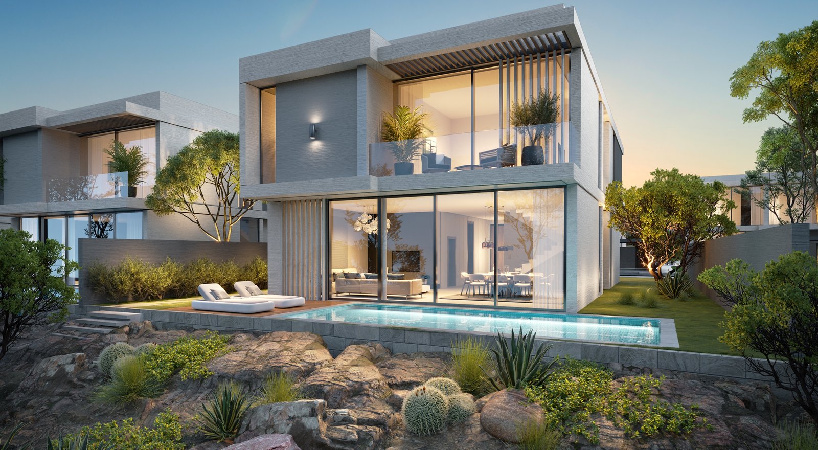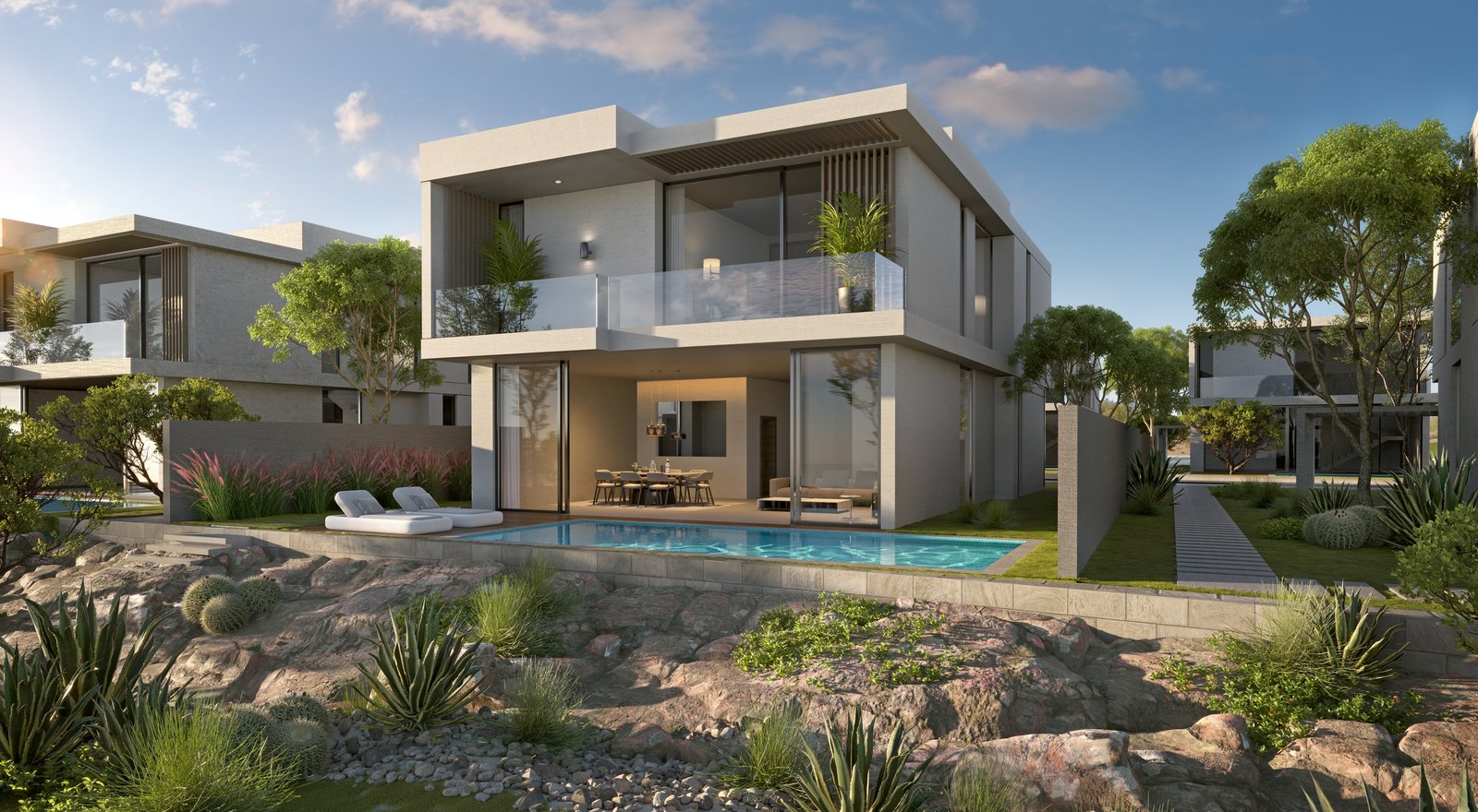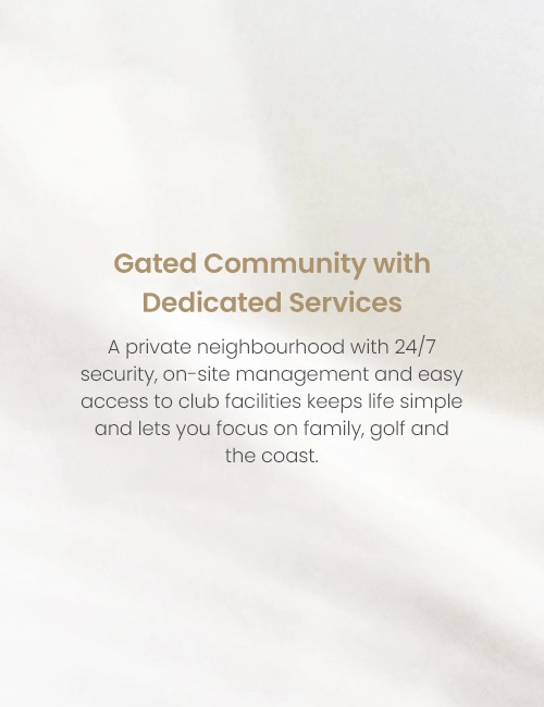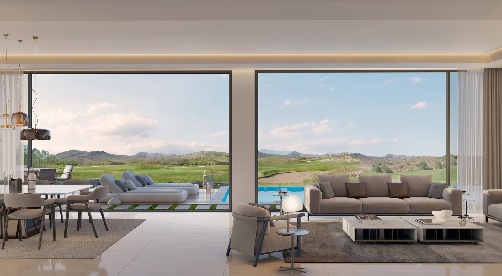 Fairway Villas are designed for people who love golf and clean, modern living. The villas use a restrained palette and simple lines to highlight large, sun-filled rooms and panoramic views. Interiors feature quality materials, generous storage and layouts that suit family life and entertaining, while wide windows and expansive terraces make the course and coast part of the home experience. Villa types range across practical four-bed options to larger five-bed layouts, giving buyers clear choices for family living or holiday use.