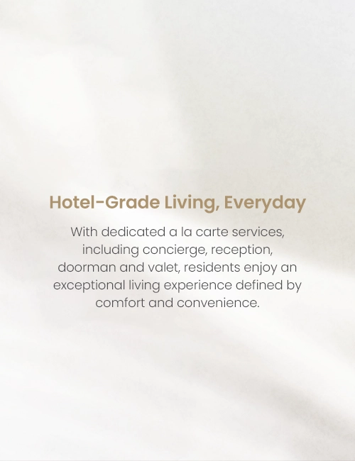 Beyond the apartment, owners get access to bespoke Marriott services: on-site concierge, reception, doorman, valet and optional housekeeping and management — a turnkey lifestyle that suits both permanent residents and savvy investors seeking hassle-free, hotel-grade occupancy. Amenities include a cliff-edge infinity pool, premium fitness facilities and dedicated recreational spaces designed for relaxation and social living.