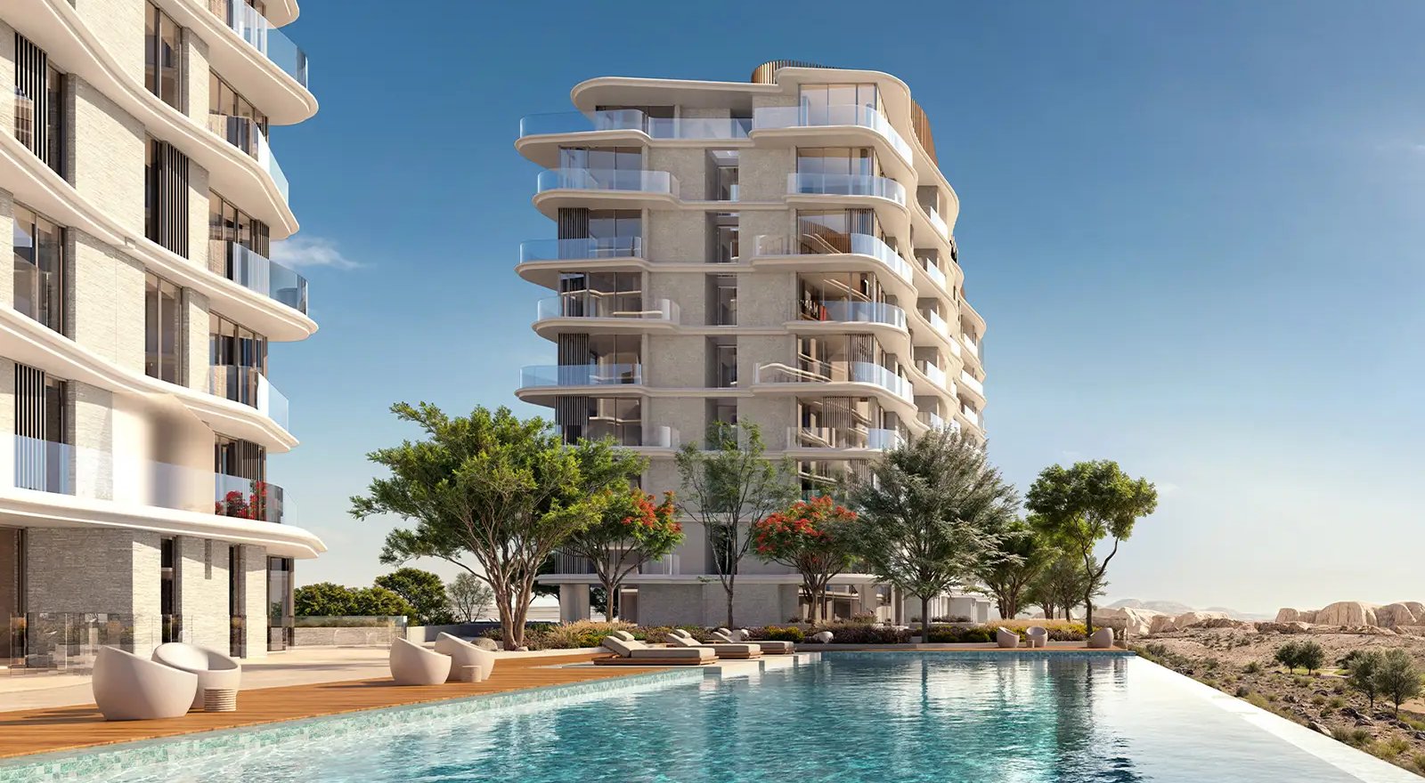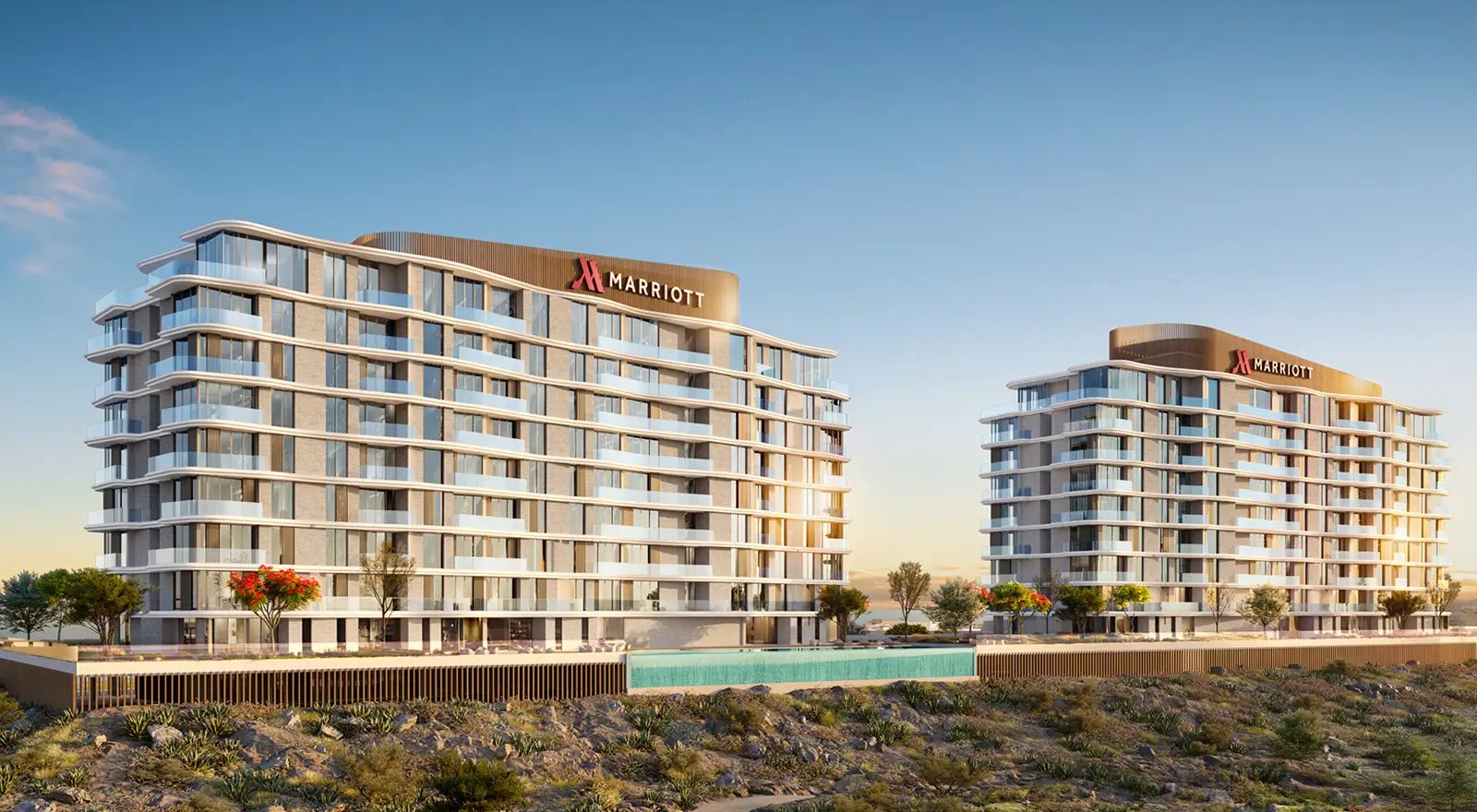 Set directly by AIDA’s shoreline, Marriott Residences AIDA comprises two elegant towers offering 1–3-bedroom fully furnished apartments and thoughtfully proportioned terraces that frame panoramic views of the Indian Ocean, Trump International Golf Course and the dramatic coastal cliffs. Interiors reflect Marriott’s world-class standards — premium European kitchens, high-quality finishes and floor-to-ceiling glazing that brings the landscape into every room.
